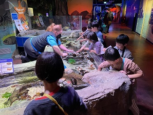 先週の木曜日にメルボルン水族館に行ってきました。写真は、子どもたちが海の生物を触っているところです。大きなワニを見た後、4Dムービーも見ることができました。