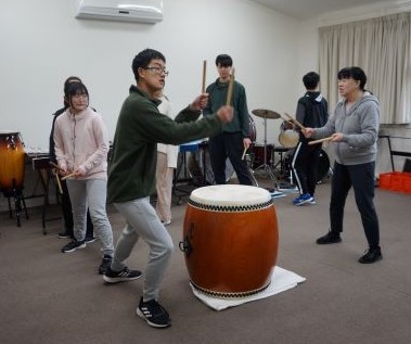中学部が音楽で和太鼓の演奏に取り組んでいます。 リズムに合わせてかけ声をかけて、順番に和太鼓を叩きます。 これからもっとかっこよさが増していくことでしょう。