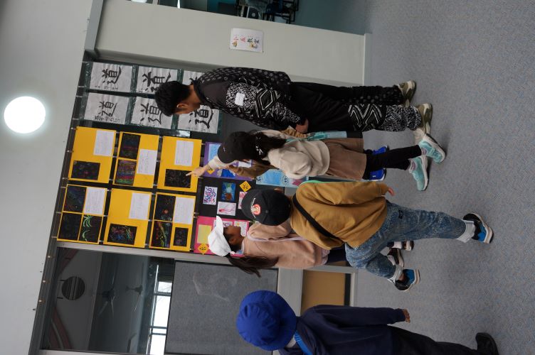 ホールに面した各学級前の掲示スペースには、 子供たちの作品の数々がたくさん掲示されています。 どの作品も感性豊かなすばらしいものです。 自分の学年以外の作品がはり出されると、みんな興味津々に見ています。 ご来校の節には、ぜひゆっくり子供たちの作品もご鑑賞ください。