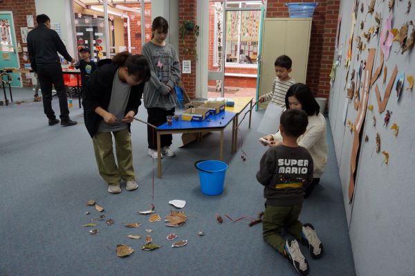 G1は魚つりやめいろを作って、楽しませてくれました。 葉っぱの魚は大きさによって、点数が違います。 説明も上手にできていました。