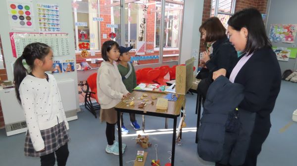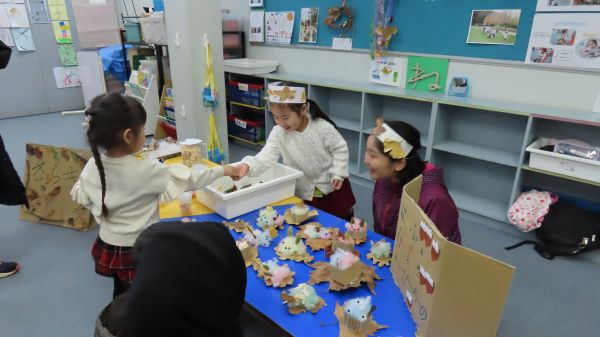 子供たちも楽しみにしていたオープン参観デー! たくさんの保護者の皆様に来ていただき、本当にありがとうございました。 どの学年も今までの学習の成果を見せようと、張り切って頑張っていました。 プレップ・G1・G2は生活科の学習であきまつりを開き、お店屋さんになってお客さんを楽しませてくれました。 G2はボーリングや輪投げ、かわいいアクセサリーのG2やたいをしました。 さすがはお兄さんお姉さん、 ボーリングや輪投げは大人でも難しかったのですが、 コツなども上手に伝えることができていました。
