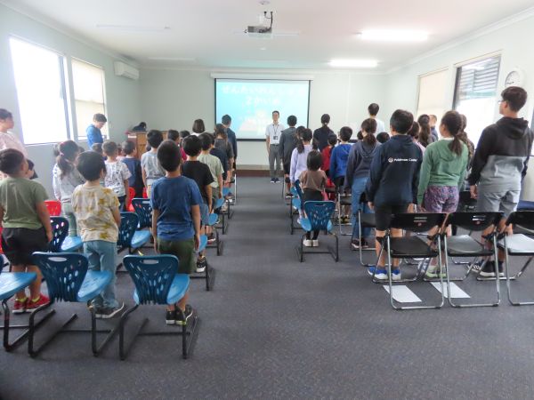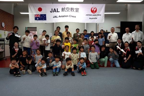 本校理事長の大森様をはじめメルボルン空港に勤務されているJALの皆様がお越しくださり、JAL航空教室が開かれました。あまりなじみはないけれど絶対にお世話になっている飛行機の貨物室の秘密や実際に運ばれているものをクイズ形式でお話くださったり、よく飛ぶ紙飛行機のつくり方を教えてもらって紙飛行機飛ばし大会をしたり、JALの制服を全員着せていただき写真を撮って搭乗券風にしていただいたりと、楽しい2時間を過ごすことができました。JALの皆様、どうもありがとうございました!