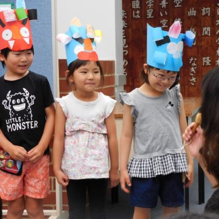 2月2日は節分、3日は立春と今年は一日早い暦になっています。今日の全校朝会では、校長から「心の鬼を退治しよう」という話があり、それぞれ自分が退治したい鬼(自分の弱いところ)について考えました。プレプレップとプレップのみんながかわいい鬼に変身して、「お話聞かない鬼」「寝坊鬼」「おふざけ鬼」など自分が退治したい鬼を発表してくれました。そして「おにはそと~ふくはうち~」と豆まきの歌を歌って全校生の心の鬼も退治してくれました。一緒に歌って踊ってくれた優しいお兄さんお姉さんたちも、どうもありがとう!いよいよ一年間の締めくくりが近付いてきています。みんなで心を合わせて最後までがんばりたいですね。