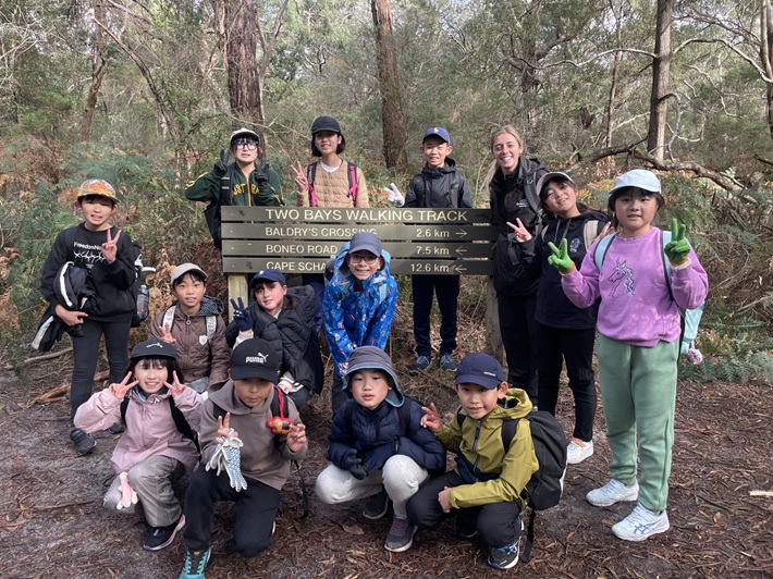 宿泊学習2日目。午前中は「ナショナルパーク」のハイキング。そして、午後は子供たちみんなが楽しみにしている「Giant Swing」と「Hut Building」、そして小学部は「Low Rope」中学部は「Archery」に挑戦しました。オーストラリアならではのダイナミックな活動に子供たちは大満足です。夜にはレク係が企画・運営する「キャンプファイヤー」が予定されています。