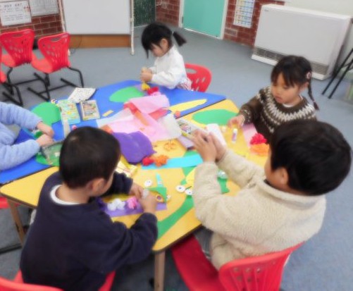 今日はプレップ体験日&説明会でした。3人のおともだちが一日体験をしてくれました。プレップさんたちは大張り切り!一生懸命お兄さんお姉さんとしての役割を果たしていて、とても頼もしかったです。読み聞かせと歌でかたつむりについて学習した後、画用紙や花紙でかたつむりを作りました。先生の説明を真剣に聞きながら、はさみやのりを使って上手に葉っぱに乗ったかわいいかたつむりを作り上げました。最後は「でんでんむしむし かたつむり~♪」とみんなで歌いながら、作ったかたつむりにひもをつけて一緒にお散歩しました。他にも、もうすぐ父の日なのでメダルのプレゼントを作ったり、G1・G2と合同のEALの授業にも参加しました。3人のおともだちは楽しんでくれたかな?また来てくださいね。