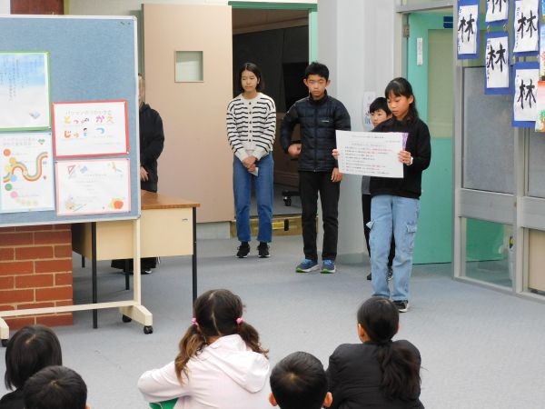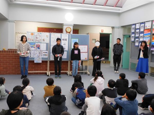 今回の朝会では、先日のジャパンフェスティバルの絵手紙コンテストでたくさんの応募の中から、見事に受賞した5人のメル校生の表彰もありました。素晴らしい成果ですね!当日の舞台発表での素晴らしさと共に、ここでもメル校生の頑張りが光っていました。受賞したみんな、おめでとう!そして応募したみんな、よく頑張りました!