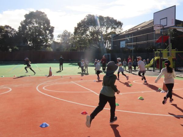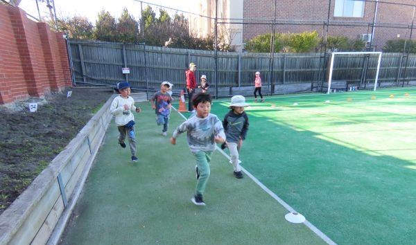 日中も寒い日が多くなり、持久走にピッタリな季節となりました。今年の持久走は「プレップ~G2」グループと「G3~G9」グループが、走るコース(距離)と時間を変えて取り組んでいます。子供たちはみんなそれぞれに目標をもって、一生懸命走っています。自分の持久走カードを見せながら、「今日は9周走ったから、フリンダース駅まで到着したよ!」とうれしそうに教えてくれる子もいました。持久走の取組は7月4日まで続きます。自分の目標に向かって、頑張れ!メル校のみんな!!