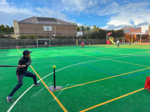 体育でTボール型のソフトボールに取り組んでいます。いつもはG5・6と中学部は違う時間割で体育をしていますが、今日は合同で行いました。少人数でもできるルールを作り、G5・6対G7・9の試合が始まりました。思いっきりバットを振り、思いっきりベースを回り、両チームとも得点を重ねました。G5・6が2点リードで迎えた最終回、G7・9が逆転ホームラン!30対34で勝利しました。