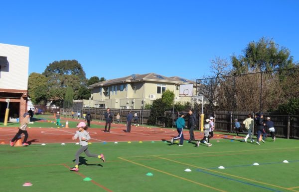 6月23日から始まった全校生による持久走も最終日を迎えました。子供たちはそれぞれの目標を決めて、一生懸命取り組むことができました。学校からフリンダース駅までの往復のカードに何周走ったかを記入するのも楽しみで、毎回走り終わったプレップさんからは「校長先生、7周たす5周は何周ですか?」などと質問を受けていました。そばにG1さんやG2さんがいると、すかざず「12周だよ」と答えが返ってくることもありました。メル校のみなさん、カードは何枚達成できましたか?持久走タイムは今日で終わりましたが、休み時間などちょっとしたすきま時間に「走ること」を続けて、自分の体力を高めることができれば良いですね。