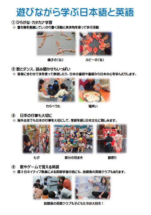 この一番大切な時期に、日本語に接する機会が減ったり、外国語に接する時間が長くなったりすると、日本語の発達が止まり、更にそれまで培った日本語も失われていく危険性があります。